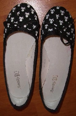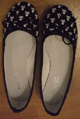 Ma gentille maman revenue de son séjour de 3 jours pour un mariage du coté de l’Outre-Rhin m’a ramené un petit haut sympa et une paire de ballerines sauf qu’elle est trop petite pour moi !! Elle a pris la bonne taille mais c’est pas un vrai 39 ça ressemble plus à un 38 sinon je rentrerais dedans !