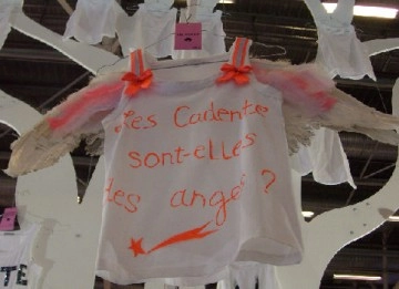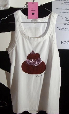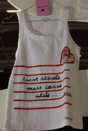 Il s’agit d’une opération de l’association Perce-Neige (créé par Lino Ventura en 1966) qui vient en aide aux personnes handicapées mentales et aux enfants inadaptés. Cette exposition » Les petits dessous prennent le dessus.. » de débardeurs customisés par une trentaine de people fera l’objet d’une vente aux enchères au profit de cette association.