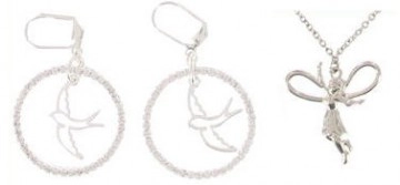 boucles d’oreilles hirondelles et strass 44,60€ ; collier fée 22€