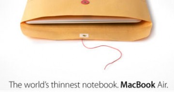 Apple révolutionne encore le monde informatique en présentant le portable le plus fin du monde , tellement fin qu’il rentre dans une enveloppe !!! D’ une épaisseur de 1,94 cm pour un poids plume de 1,36kg !! En plus d’être fin et lèger, il est beau, design et on retrouve le multi-touch de l’iPhone qui permet de tout gèrer d’un simple geste des doigts! Voyez par vous-mêmes