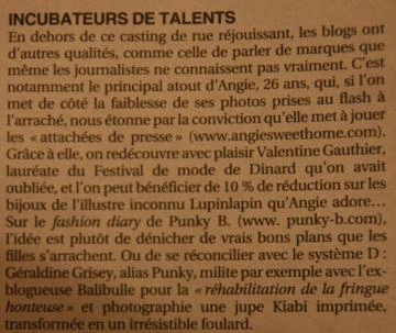 On y retrouve également les bloggeuses « modeuses » habituelles citées déjà par la presse féminine