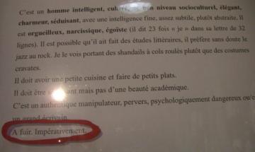 » Croyez moi cette lettre est un formidable moyen de confiance, de respect et d’amour. Cet homme a de vous une image positive qui doit vous permettre de reprendre confiance et de retrouver l’estime de vous-même que l’incarcération vous a fait perdre. Je vous conseille de préserver cette lettre, qui, j’en suis sûre, vous apportera de la force dans votre solitude cellulaire. Bien qu’il s’agisse d’une lettre de rupture je vous recommande de la relire lorsque la tristesse vous envahit. «