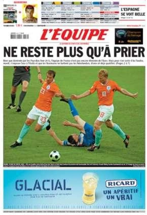 La Une du journal l’équipe vendredi dernier (jour du match)
