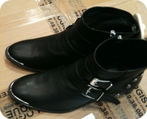 J’hallucine O_O du coup je rentre dans la boutique, je vois la paire de boots dans un coin, je vérifie le prix est bizarrement c’est pas celui indiqué en vitrine, je me renseigne auprès de la vendeuse qui me confirme que le prix est bien de 162 € 🙂 Donc pas d’hésitation, je les essaye et en plus la paire que j’ai dans la main est à ma taille !! 🙂