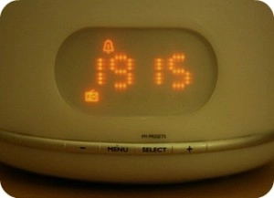 Le réveil SANS la lampe Eveil Lumière, je programmais plusieurs réveils un tous les 1/4 d’heure, et je me lève en général au 3ème, donc le réveil sonne 3/4 d’heure avant que je daigne sortir du lit. Il m’arrivait de ne pas entendre la 1ère sonnerie et donc de croire qu’il m’en restait une alors que non, ou encore de sursauter au son du réveil.