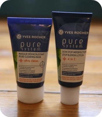 Ces 2 produits font partie de la nouvelle gamme Pure System d’Yves Rocher pour les peaux à tendance acnéique. Dans cette gamme de produits on retrouve 2 actifs principaux : l’ acide salicylique , anti-bactérien et puissant rénovateur de peau, et la pulpe d’aloe vera bio , qui est connue pour ses propriétés hydratantes et réparatrices.
