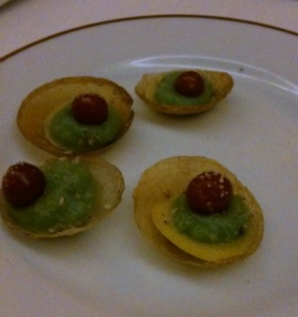On commence tout doucement avec des amuses bouches avec un cocktail au Dhjana