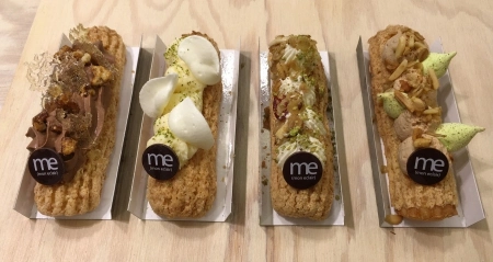 Derrière le comptoir de Me (Mon éclair), il y a Johanna Le Pape -à gauche sur la photo ci-dessus-, qui a remporté le titre de Championne du monde des arts sucrés en 2014 et Grégory Cohen, qui a plusieurs casquettes : chef, pâtissier, entrepreneur, blogueur. Il a ouvert son premier restaurant le Bar à Burger en 2013.