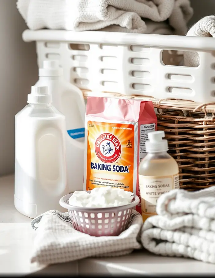 • Produits naturels : bicarbonate de soude, vinaigre blanc ou savon de Marseille pour un linge éclatant et sans produits chimiques.