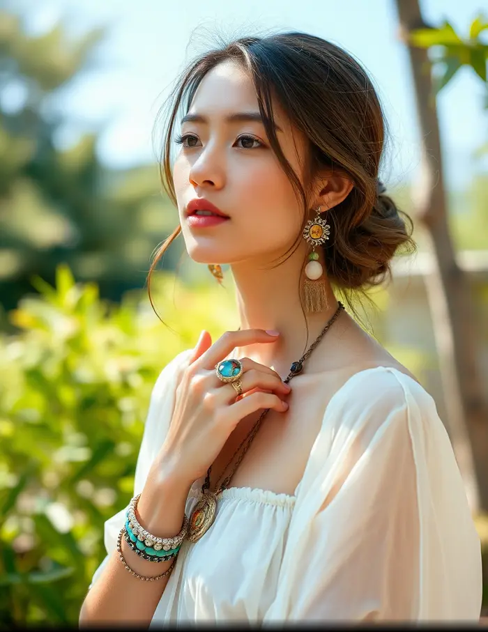 Le style bohème mise sur l’originalité, la liberté et les textures naturelles. Les bijoux en résine peuvent parfaitement compléter ce look grâce à leurs couleurs vives, leurs inclusions et leurs formes organiques.