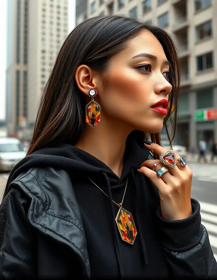 Le streetwear se définit par une esthétique urbaine, confortable et parfois audacieuse. Les bijoux en résine y trouvent parfaitement leur place, en ajoutant une touche pop et contemporaine.