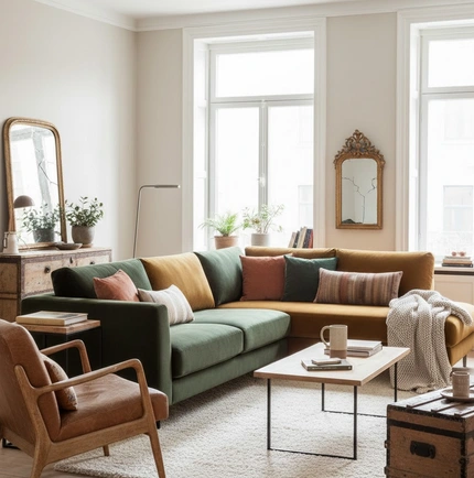 Pour créer une atmosphère cohérente, jouez avec des couleurs harmonieuses et des styles qui se répondent. N’hésitez pas à mixer des teintes douces avec des accents plus profonds, et à associer un canapé contemporain avec des accessoires vintage pour apporter du caractère et de la personnalité à votre séjour.