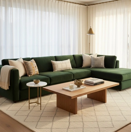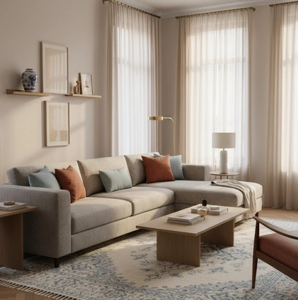 Pour que votre séjour soit agréable, choisissez des meubles qui combinent confort et praticité. Un canapé profond avec des coussins moelleux, ou une chaise avec un bon maintien, transforme chaque moment en une expérience douce et accueillante, où l’on a envie de s’attarder.