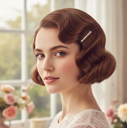 Appliquez un peu de gel brillant sur votre carré humide et façonnez les ondulations en formant des S avec vos doigts. Maintenez chaque vague avec des pinces le temps du séchage, puis retirez délicatement les pinces. Le résultat : un look rétro élégant, parfait pour une allure sophistiquée et graphique.