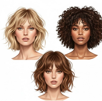 | Cheveux fins, visage ovale | Shaggy léger avec étages visibles | Ondulations souples, frange travaillée à la brosse ronde, brillance subtile sur les pointes |