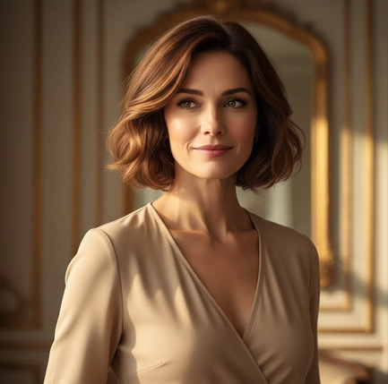 Le bob français joue avec les longueurs et les contours pour créer un volume maîtrisé, doux et élégant. On peut oser une frange rideau subtile ou un balayage discret pour encadrer le visage, offrant ainsi un style raffiné et chic qui reste facile à vivre au quotidien.