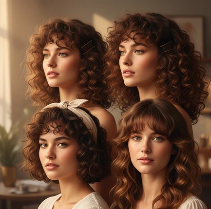 Choisissez une frange ou une boucle qui équilibre vos traits : les franges légères adoucissent un visage carré, tandis que les boucles bien dessinées ajoutent du volume aux visages fins et longs.
