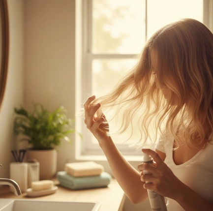 Un petit geste simple : soulevez les racines avec les doigts et vaporisez un spray texturisant pour redonner du volume instantané et un effet légèrement wavy, même après plusieurs heures.