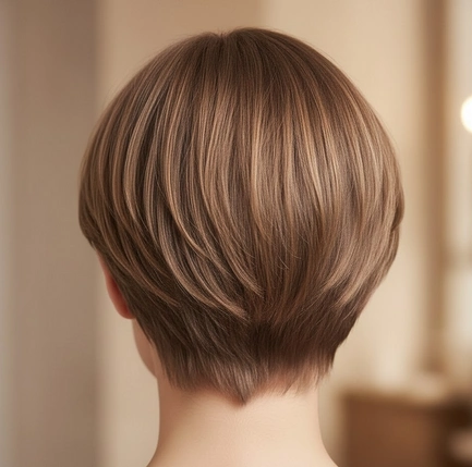 Cette coupe mise sur un dégradé subtil à l’arrière qui ouvre la nuque et souligne la structure du visage. Simple à entretenir, elle gagne en éclat avec un thermo-protecteur avant l’utilisation d’accessoires chauffants et un entretien régulier en salon pour garder l’architecture parfaite.