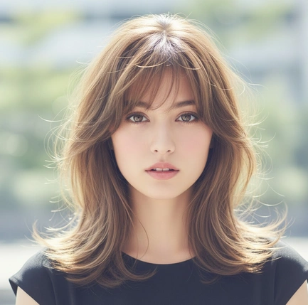 Pour sublimer une coupe mi-longue, la frange rideau légère reste un allié précieux : elle accompagne le mouvement naturel des mèches et encadre délicatement le visage, donnant une impression de fluidité et de légèreté.