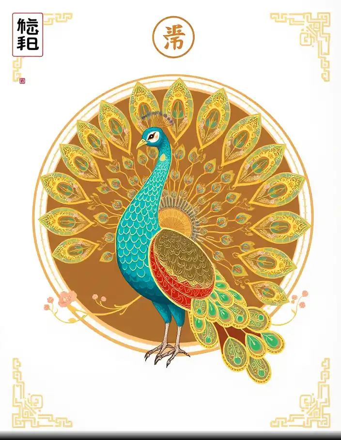 PaonDécoratif ou symboliqueBeauté, éclat, harmonie socialeFeu / BoisBleu, Vert, Turquoise