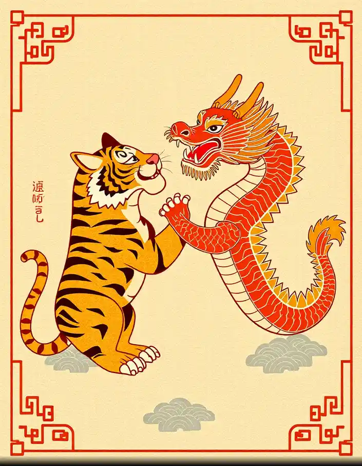 Imaginez votre espace comme un petit univers où chaque meuble et chaque coin raconte une histoire. À gauche, le dragon veille sur vos trésors, qu’il s’agisse d’une armoire imposante ou d’un mur décoratif, légèrement plus haut que votre bureau. À droite, le tigre, plus discret et plus bas, équilibre l’ensemble, rappelant que la puissance et la protection peuvent coexister avec douceur et subtilité.
