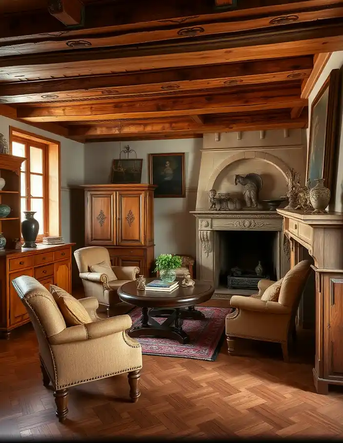 Le style ancien évoque la patine du temps, le travail artisanal et la noblesse des matériaux. On pense aux meubles en chêne massif, aux moulures, aux boiseries, à la pierre naturelle ou au cuivre. Ce sont des éléments qui racontent une histoire, qui incarnent la mémoire du lieu.