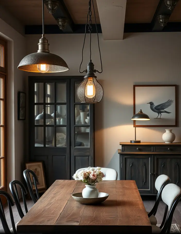 Les lampes design en métal ou en verre soufflé s’accordent parfaitement avec des meubles anciens. Une suspension industrielle peut dynamiser une salle à manger rustique, tandis qu’une lampe en céramique vintage adoucit un espace minimaliste.
