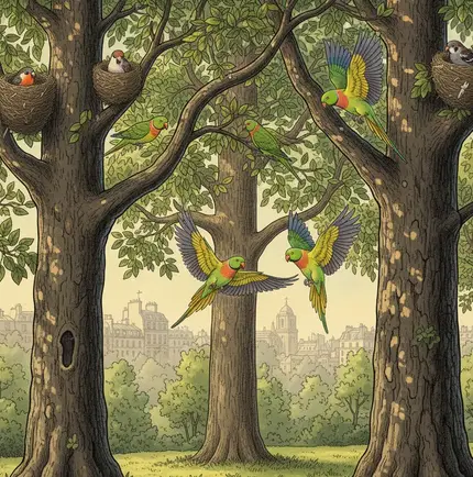 - Les premiers couples de Perruche à collier ont niché à Paris dès 2008, marquant un tournant dans leur présence urbaine.