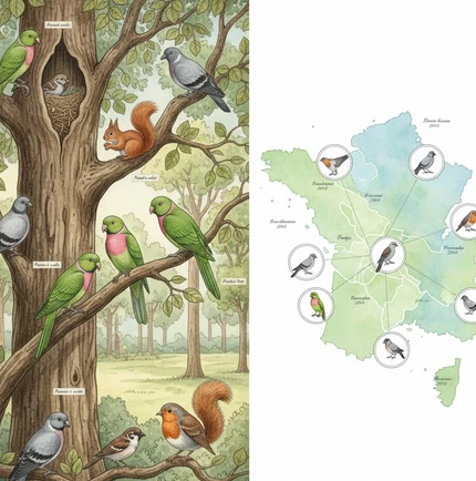 Cet article vous propose de découvrir l’histoire de leur implantation, leur comportement fascinant et les observations qui permettent de mieux comprendre la cohabitation entre espèces locales et nouveaux arrivants 🦜. Une invitation à regarder nos jardins et nos villes avec un œil attentif et émerveillé.