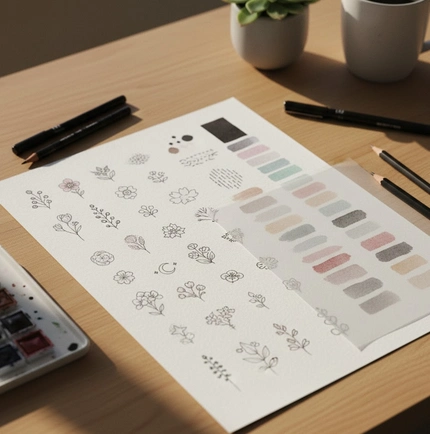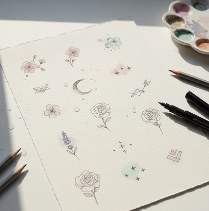 Avant de tatouer, testez vos combinaisons avec un feutre cosmétique ou un stencil sur 24h, pour vérifier le rendu naturel et l’équilibre de votre mini-collection.