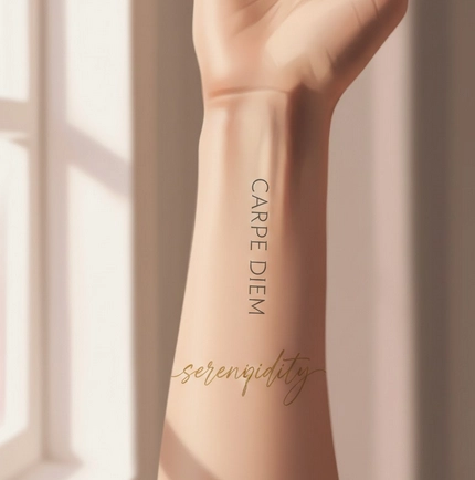 - Positionnez vos phrases horizontalement au-dessus du pli du poignet ou verticalement le long de l’os pour un effet raffiné et naturel.