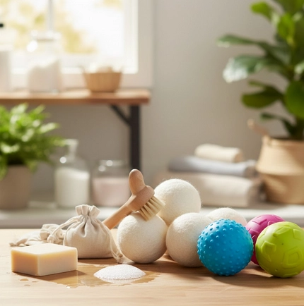 Les boules de séchage en laine ou accessoires réutilisables offrent une alternative naturelle, silencieuse et élégante.