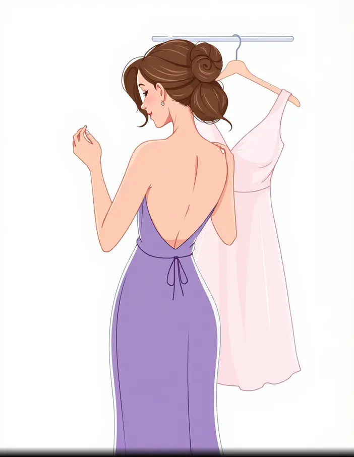 💡 Astuce : une robe dos nu en tissu lĂ©gĂšrement extensible permet une meilleure tenue sans besoin de soutien-gorge complexe.