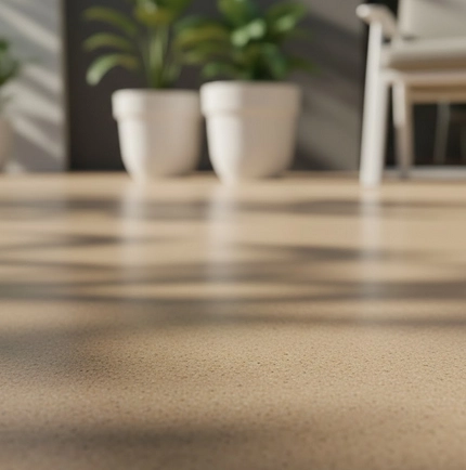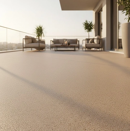 L’ajout de granulats naturels à la résine transforme chaque terrasse en un espace unique, alliant esthétique et confort. Selon le type de grains choisis, la surface peut être délicatement texturée ou parfaitement lisse, créant un jeu subtil de lumière et de profondeur sous vos pieds.