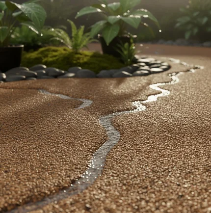 La résine drainante transforme votre terrasse en un espace frais et fonctionnel, laissant l’eau s’échapper naturellement et offrant un confort incomparable sous vos pieds même après la pluie.