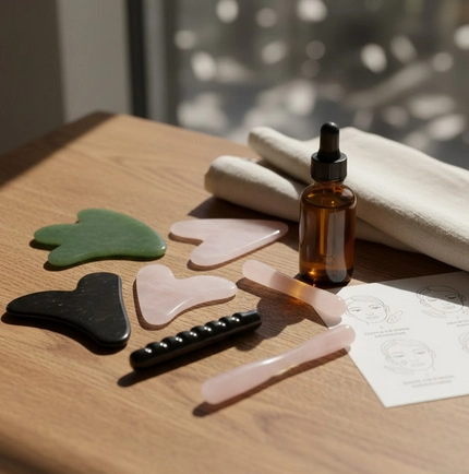 J’aime penser ce moment comme un petit rituel Ă  soi. On nettoie la peau, on se pose, et on choisit une huile vĂ©gĂ©tale au toucher soyeux. Quelques gouttes suffisent pour transformer la surface de la peau en un terrain doux et fluide, prĂȘt Ă  accueillir le gua sha sans accrocs.
