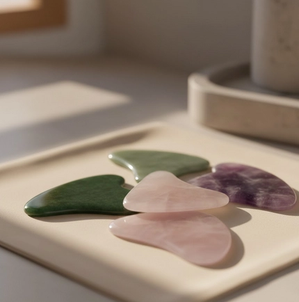 Aujourd’hui, le gua sha sĂ©duit pour son Ă©lĂ©gance et son efficacitĂ©, ses pierres polies – quartz rose, jade ou obsidienne – offrant non seulement une esthĂ©tique raffinĂ©e, mais aussi des propriĂ©tĂ©s uniques qui accompagnent dĂ©licatement la routine beautĂ© quotidienne, presque comme un petit voyage au cƓur d’une tradition ancestrale.