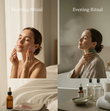 Intégrer le gua sha dans votre routine beauté quotidienne ne prend que quelques minutes pour un moment de détente sensoriel.