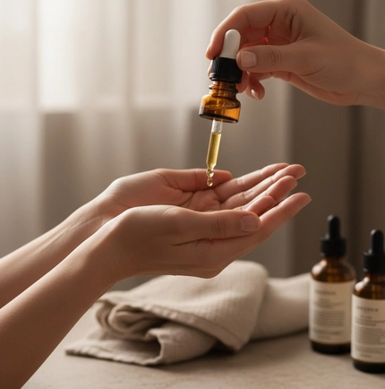 Je dĂ©pose ensuite quelques gouttes d’huile vĂ©gĂ©tale, choisie pour sa texture soyeuse et son parfum discret. Elle glisse sous les doigts, enveloppe la peau et transforme ce geste simple en un rituel chaleureux, presque mĂ©ditatif.