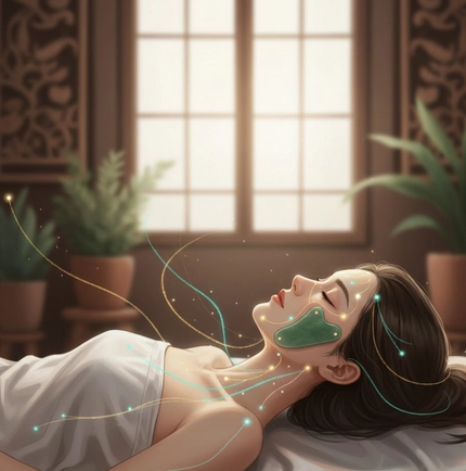 Le gua sha stimule la circulation et illumine naturellement le visage grùce à des gestes doux et précis.