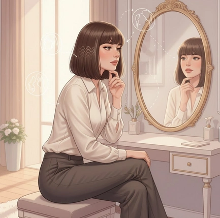Pour un visage rond, le premier geste consiste à observer attentivement ses proportions. Mesurez la largeur et la hauteur du visage, notez la rondeur des joues et la douceur de la mâchoire afin de définir vos atouts naturels.