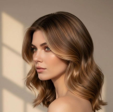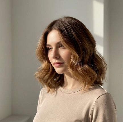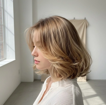 - Un balayage discret sur le sommet ajoute du volume et de la verticalité sans alourdir le visage.