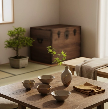 Cette esthétique, profondément liée au zen et à la contemplation, valorise l’éphémère et l’authenticité. Un vieux bol en céramique craquelé ou une table en bois marqué par le temps deviennent des témoins silencieux du quotidien, riches de sens et d’émotions.