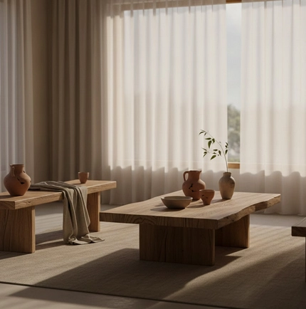 Au quotidien, le wabi sabi nous invite à choisir avec soin nos objets et nos habitudes, à privilégier l’artisanat, le local et l’éthique. Chaque meuble, chaque détail raconte une histoire, apportant chaleur et authenticité à notre espace.