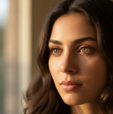 Des détails subtils, comme un bijou doré près du visage ou un maquillage qui capte la lumière, révèlent toute la profondeur et les nuances de l’iris, renforçant le charisme naturel.
